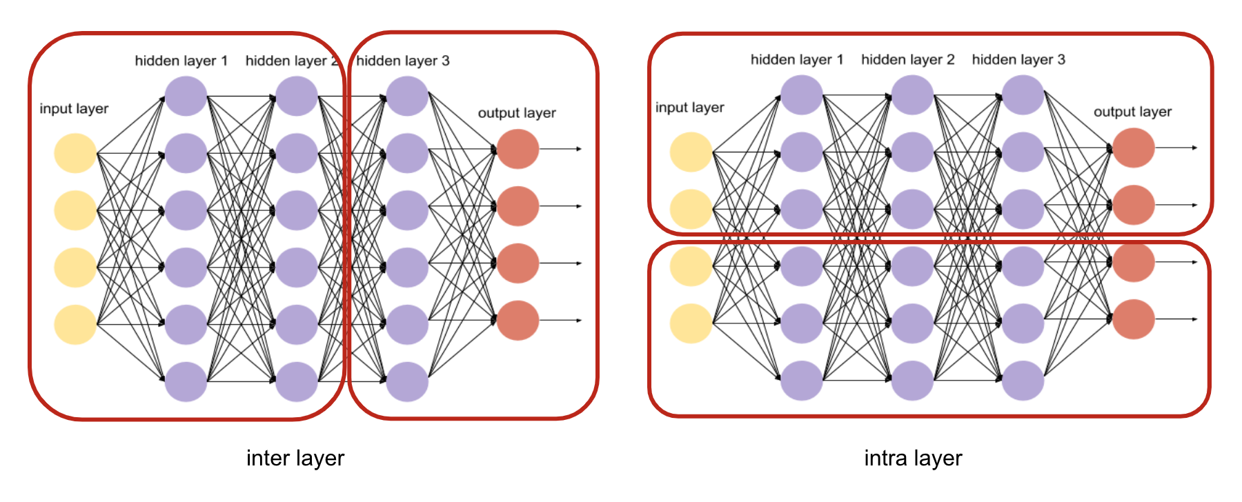 대충 머리로만 생각해도 모델을 이루는 수만개의 weight들을 어떻게 나눠야 할지 조금 막막해지는 면이 있습니다. 모델은 각 유형에 따라 다르게 나눠질 수 있지만 Neural Network를 이루는 layer를 기준으로 다음과 같은 두가지 방식이 존재합니다.