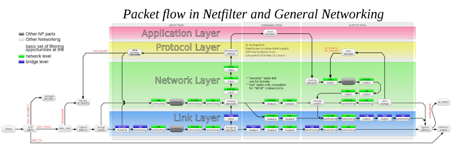 위 그림은 꽤나 복잡해 보이지만, PREROUNTING, INPUT, OUTPUT, FORWARD, POSTROUTING 글씨에 맞춰서 보면 이해하기 쉽습니다.